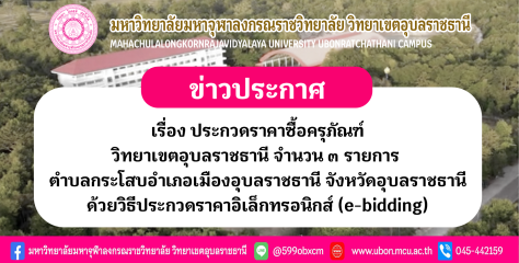เรื่อง ประกวดราคาซื้อครุภัณฑ์ วิทยาเขตอุบลราชธานี จำนวน ๓ รายการ