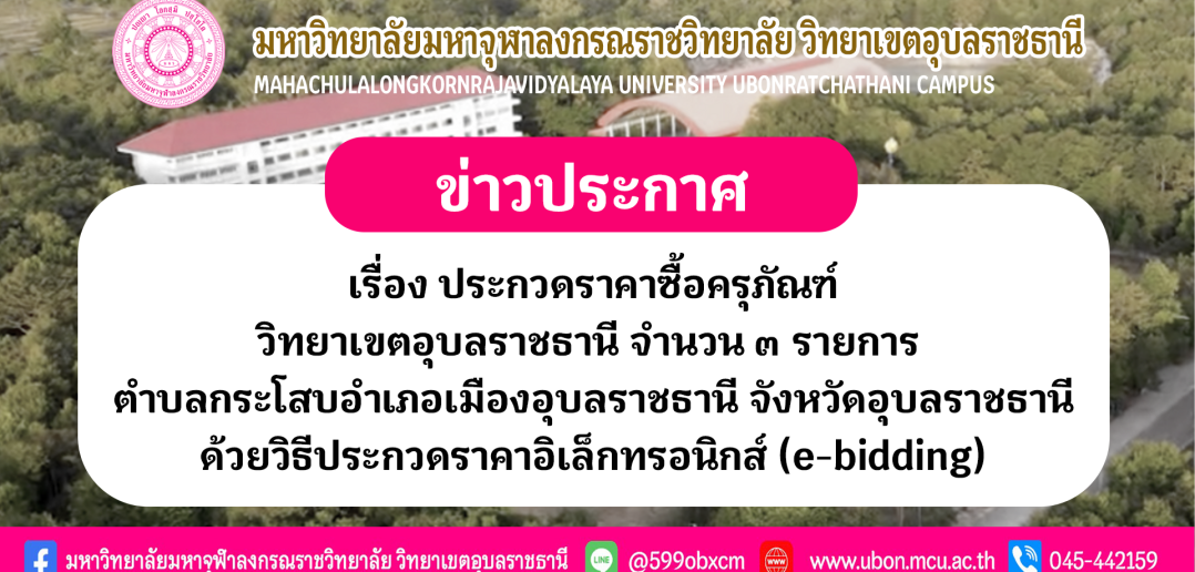 เรื่อง ประกวดราคาซื้อครุภัณฑ์ วิทยาเขตอุบลราชธานี จำนวน ๓ รายการ ตำบลกระโสบอำเภอเมืองอุบลราชธานี จังหวัดอุบลราชธานี ด้วยวิธีประกวดราคาอิเล็กทรอนิกส์ (e-bidding)